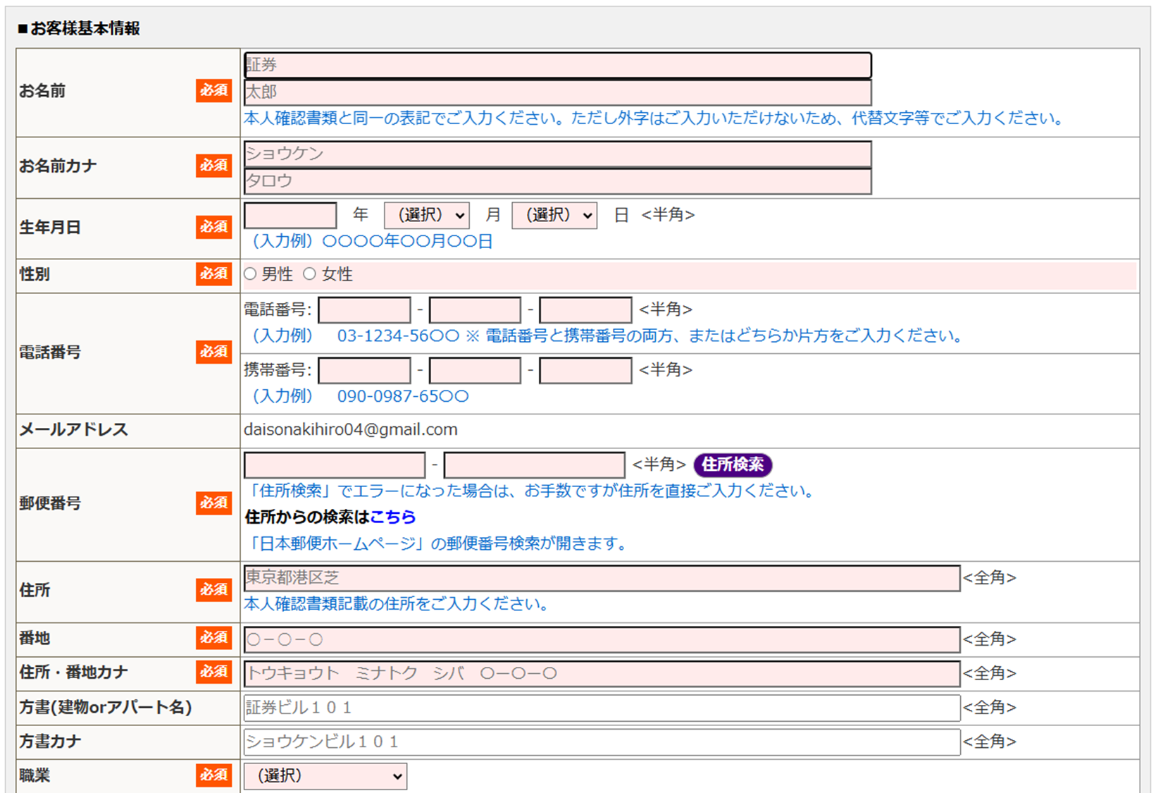 ③お客様基本情報をご入力ください